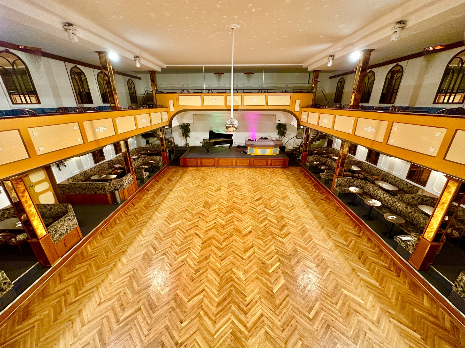 Kategorie A (EUR 22,50 pro Karte): Diese Sitzplätze befinden sich an den vorderen Tischen unserer Galerie (= Empore). Von dort haben Sie den perfekten Blick von oben auf die Tanzfläche und auf die Bühne.