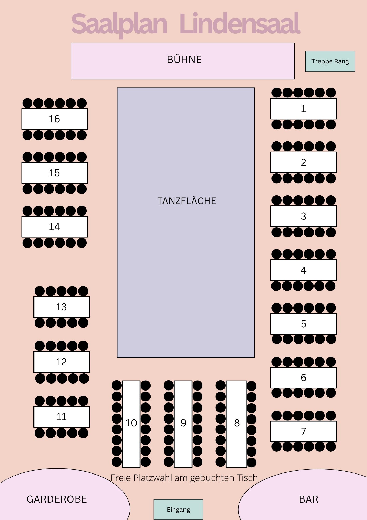 Lassen Sie sich im bezaubernden Lindensaal von unseren Tanzlehrern und tollen Showeinlagen einen Abend lang verzaubern.