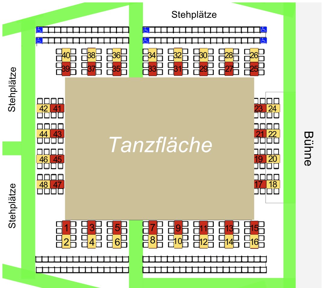Kategorie B: Tischreihe 2, auĂźen: 30,00 EUR