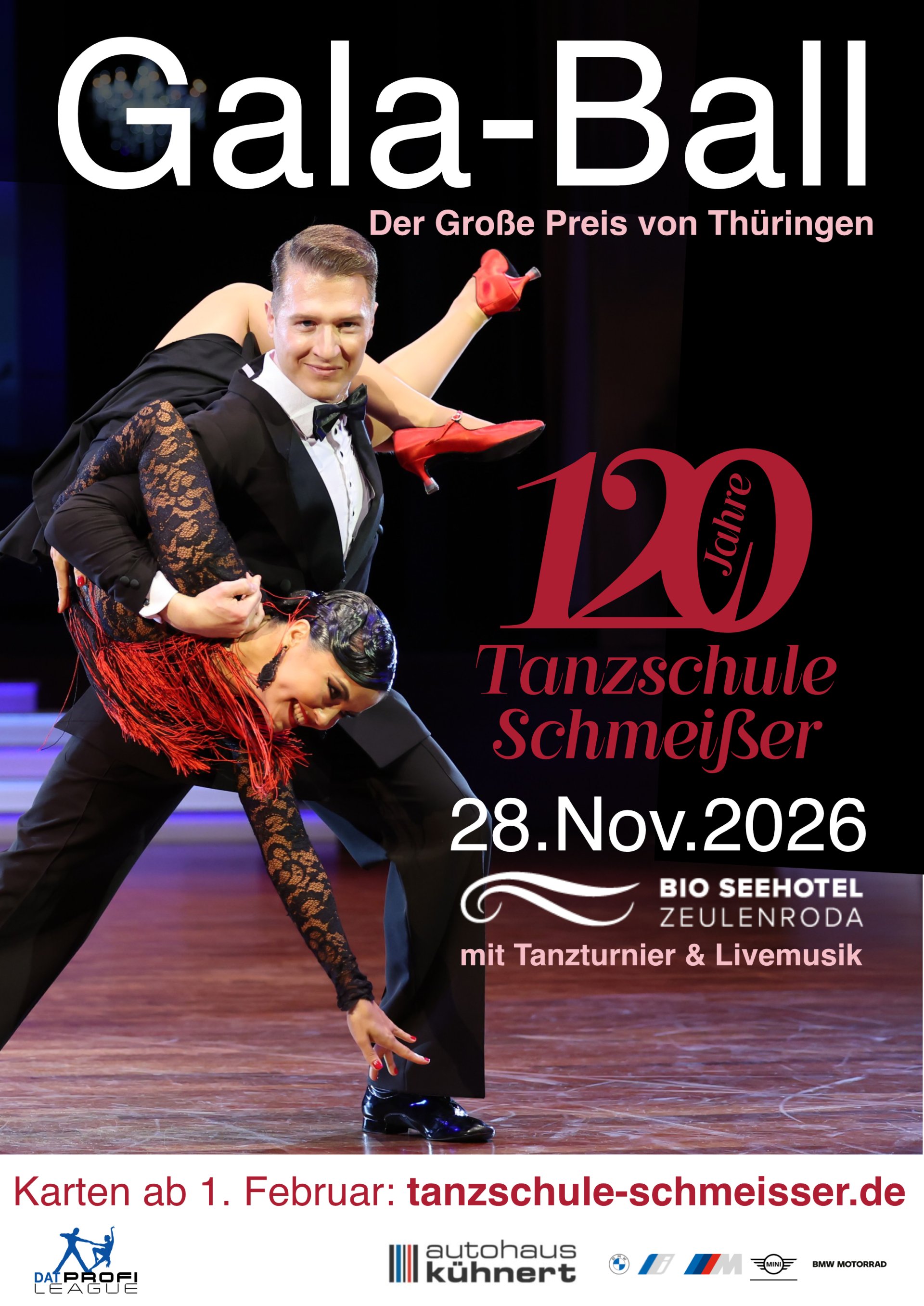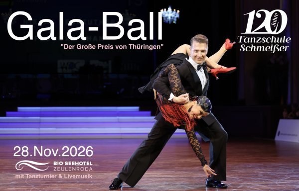 Feiern Sie mit uns den Höhepunkt unseres Jubiläumsjahres im Bio-Seehotel. Es erwartet Sie eine rauschende Ballnacht mit Live-Musik und einem Tanzturnier der DAT-Profis im Kür-Standardtanz, der "Große Preis von Thüringen".